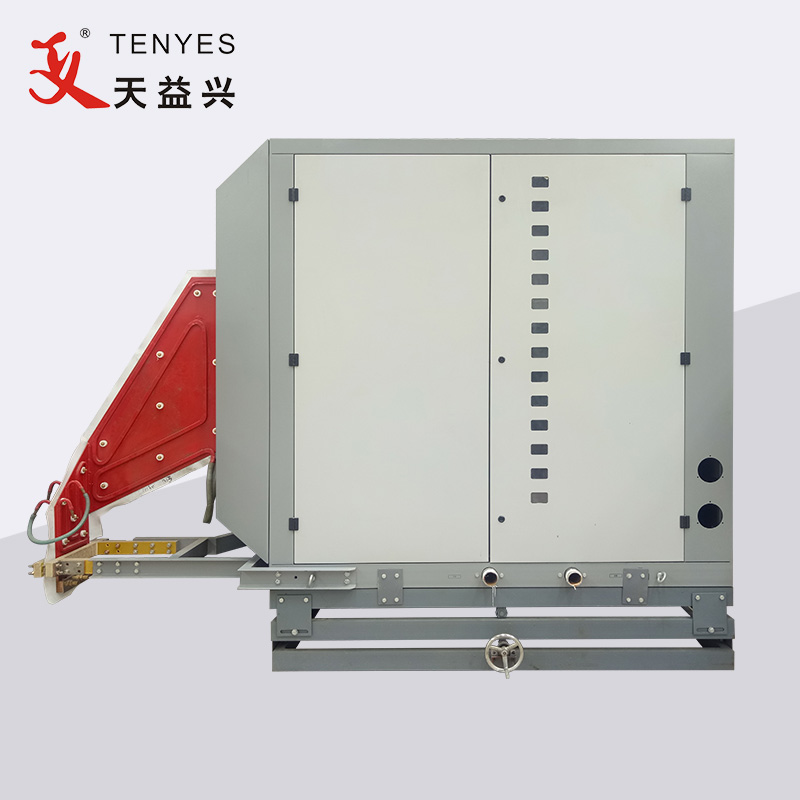 Обичната трифазна наизменична струја (напон на линија 380V, фреквенција 50HZ) се намалува од трансформаторот (напон на линија 200V, фреквенција 50HZ), влегува во кабинетот на исправувачот и станува постојано прилагодлива директна струја од 0 до 240V по исправување, регулација на напонот и филтрирање ; Потоа влегува во мостот на инвертерот (со користење на транзистор со голема моќност MOSFET) и станува високофреквентна струја, која се доставува до коритото за оптоварување и може да се користи за индукционо загревање.