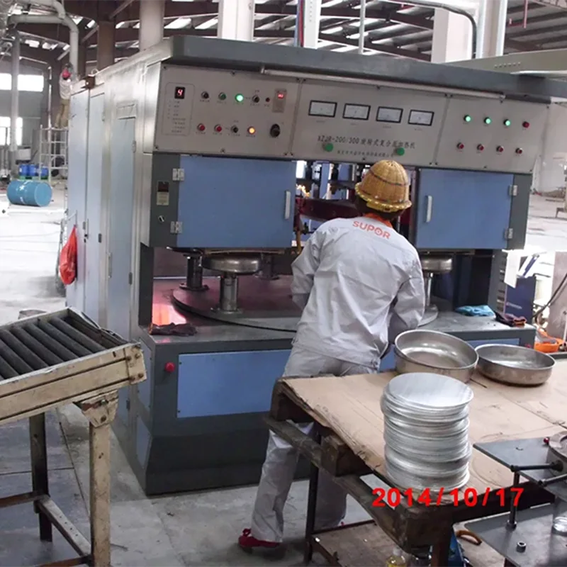 Работно место на машината за греење на дното од алуминиумски сад