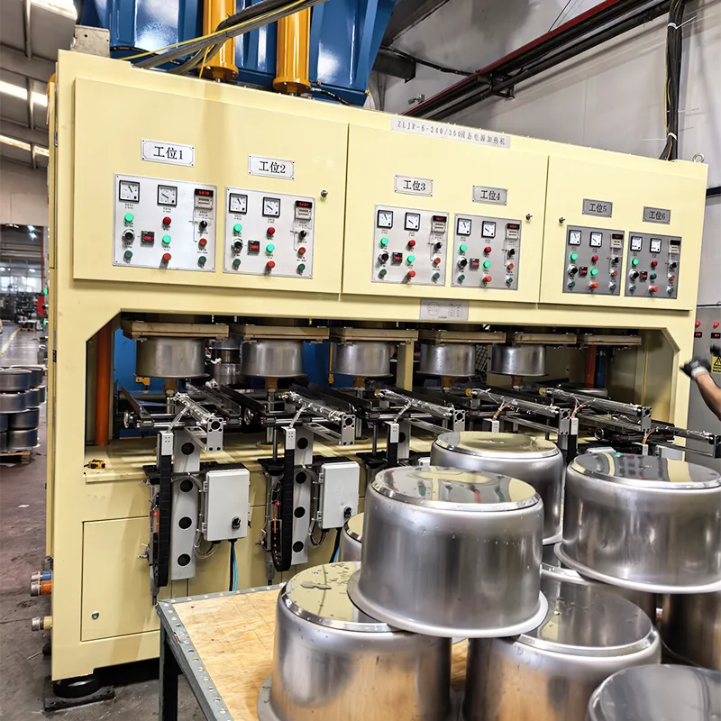 Вградена машина за греење со пет станици за автоматско производство на премаз од дното на тенџерето од не'рѓосувачки челик